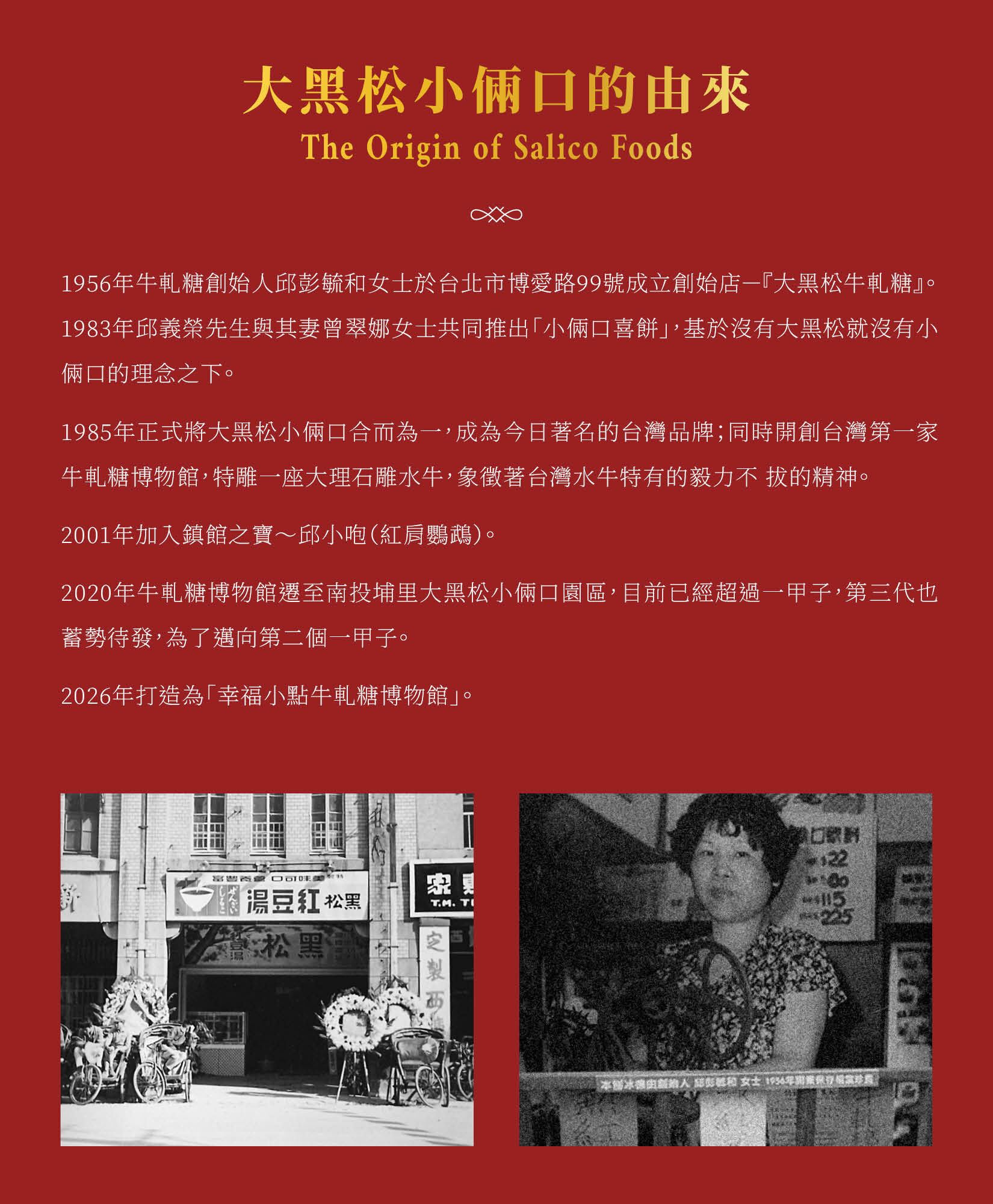 大黑松小倆口以口碑為名,高品質、吃的安心。我們傭有60餘年的糕餅經,傳承三代的手藝讓每一顆牛軋糖都能夠達到Q彈不膩,一吃就上口。