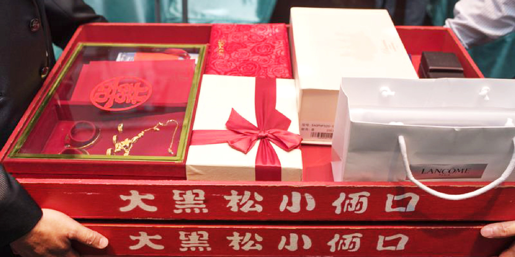 聘金盒:準備給女方的大小聘、金項鍊、手鍊,象徵富貴吉祥