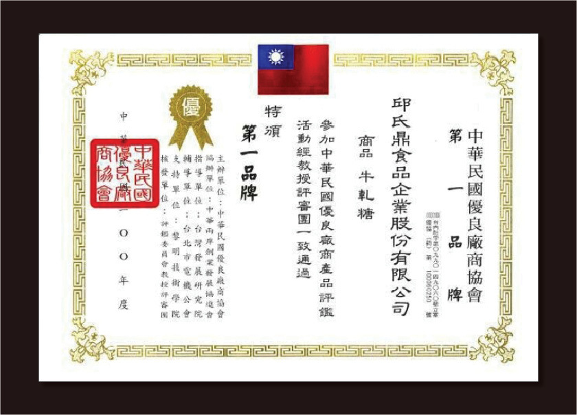 ※榮獲中華民國優良廠商協會牛軋糖第一品牌評鑑